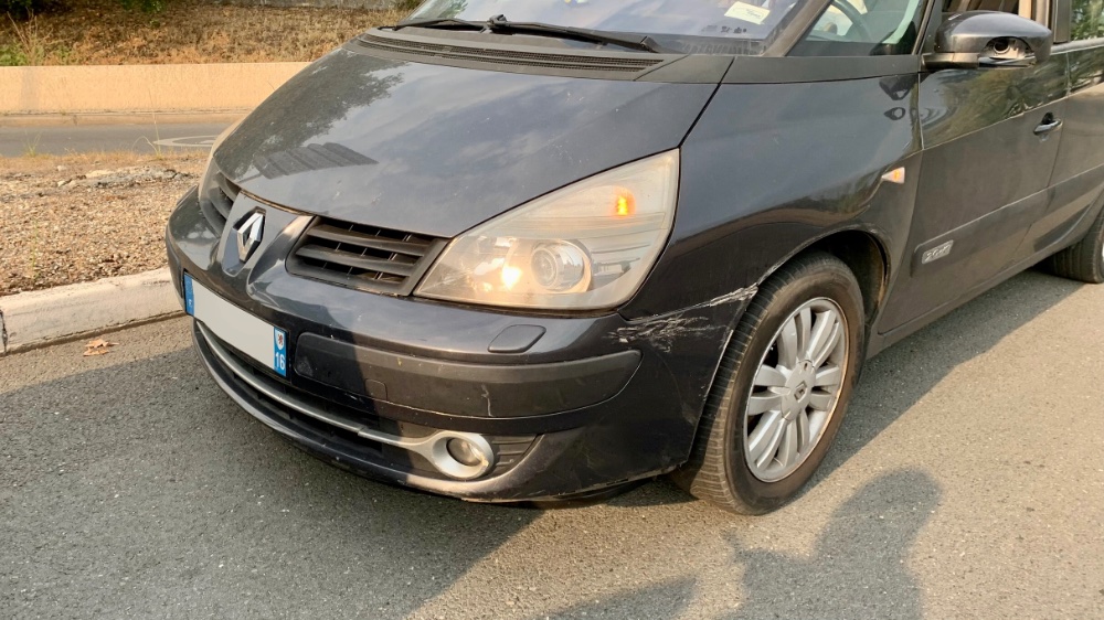 Malheureusement en plein retour de vacances à seulement une vingtaine de kilomètres de la maison un conducteur s'est rabattu sur moi en tentant de forcer le passage dans un rond point et est venu l'égratigner à l'avant gauche, les dégâts sont minimes mais le prix d'un phare neuf assez exorbitant : 1100€ HT