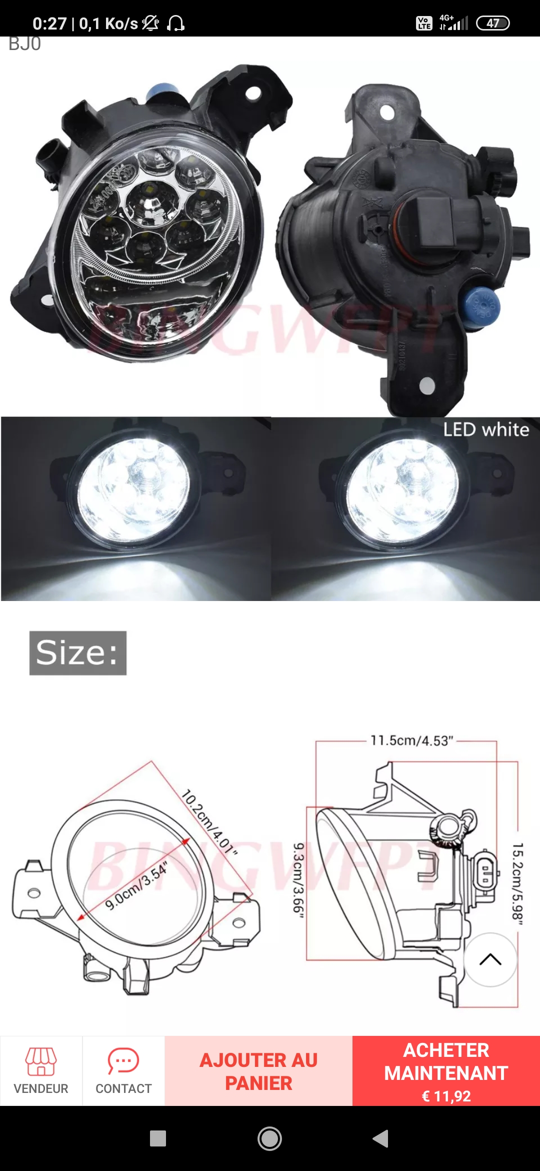 Cette semaine vidange moteur et boîte, j'ai commandé une paire d'anti brouillard sur un site chinois (j'ai un anti brouillard qui a un carreau fêlé) :