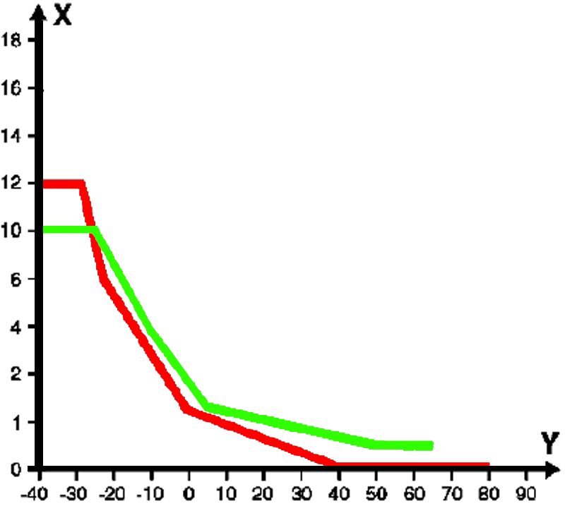 Edit légende : X = temps en secondes , et Y T° en degrés Celsius.