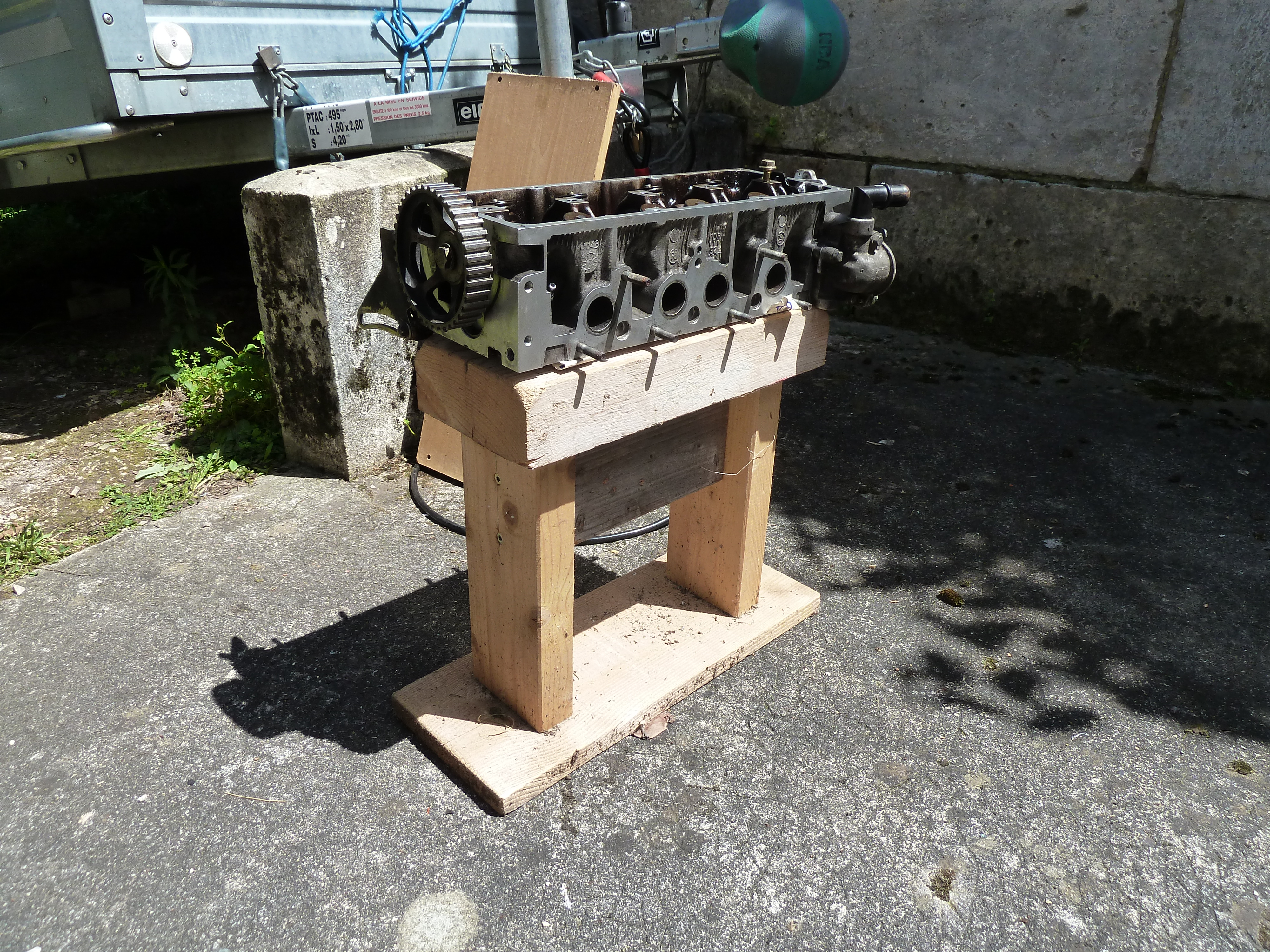 la je me suis servi de mon support moto en bois (fait maison) pour travailler sur la culasse, c'est plus simple que dans la remorque!
