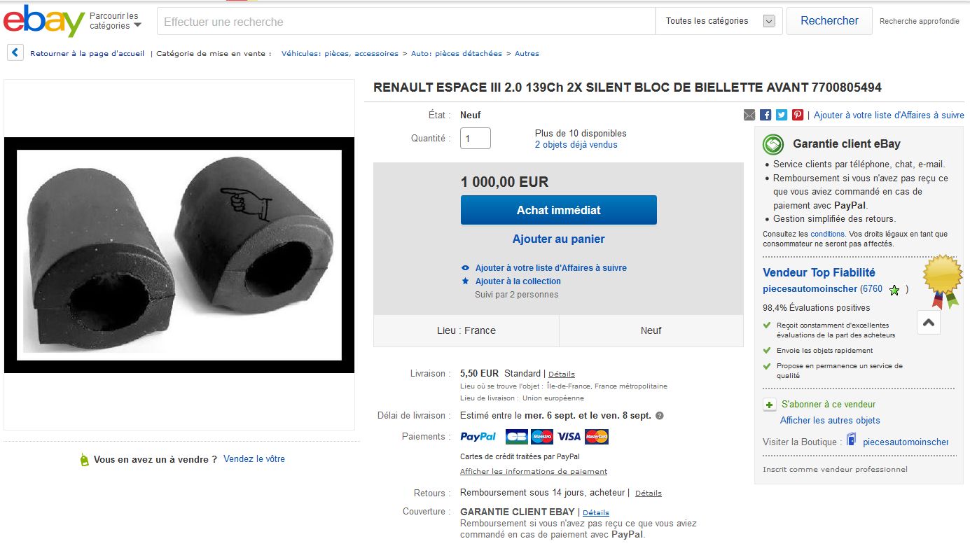 Le numéro de pièce mentionné dans l'offre de vente ebay (7700805494) est la désignation pour la biellette de barre stabilisatrice, et non la bague en caoutchouc.