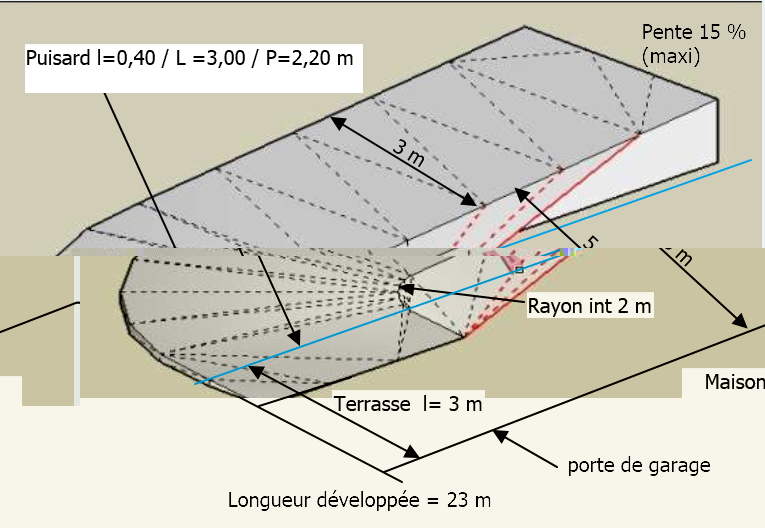 Je me suis mis l'idée de faire un plan (un copié / collé) de la descente de garage existante que j'utilise avec l'Espace 3 court.