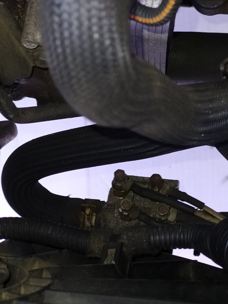 j'ai un bruit, je pensais que ça venait de la pompe à eau vu l'emplacement, mais pour écouter, j'ai mis un morceau de bois sur une tête de vis 6 pans qui ne tourne pas, et je pensais que c'était la pompe à eau (comme un con, mais ça ne correspond pas à la pompe), la seule chose à cet endroit qui à une poulie qui tourne avec une tête de vis fixe, c'est le galet tendeur, c'est lui qui fait du bruit en fin de compte, c'est juste une coïncidence avec la fuite.