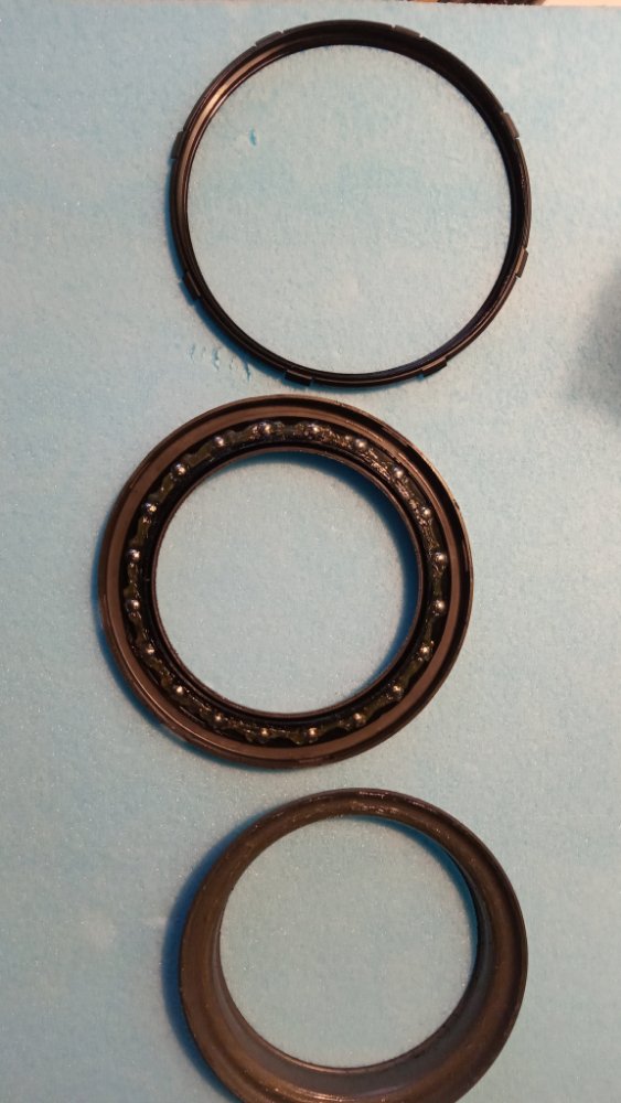 La couronne de roulement est composée d'un dessus en métal et le dessous est en matière plastique. L'ensemble doit mesurer 10 mm et je n'ai pas trop l'impression que des billes s'y trouvent. A tourner l'ensemble, on imagine plutôt une pièce en plastique graissée tournant dans une pièce métallique.
