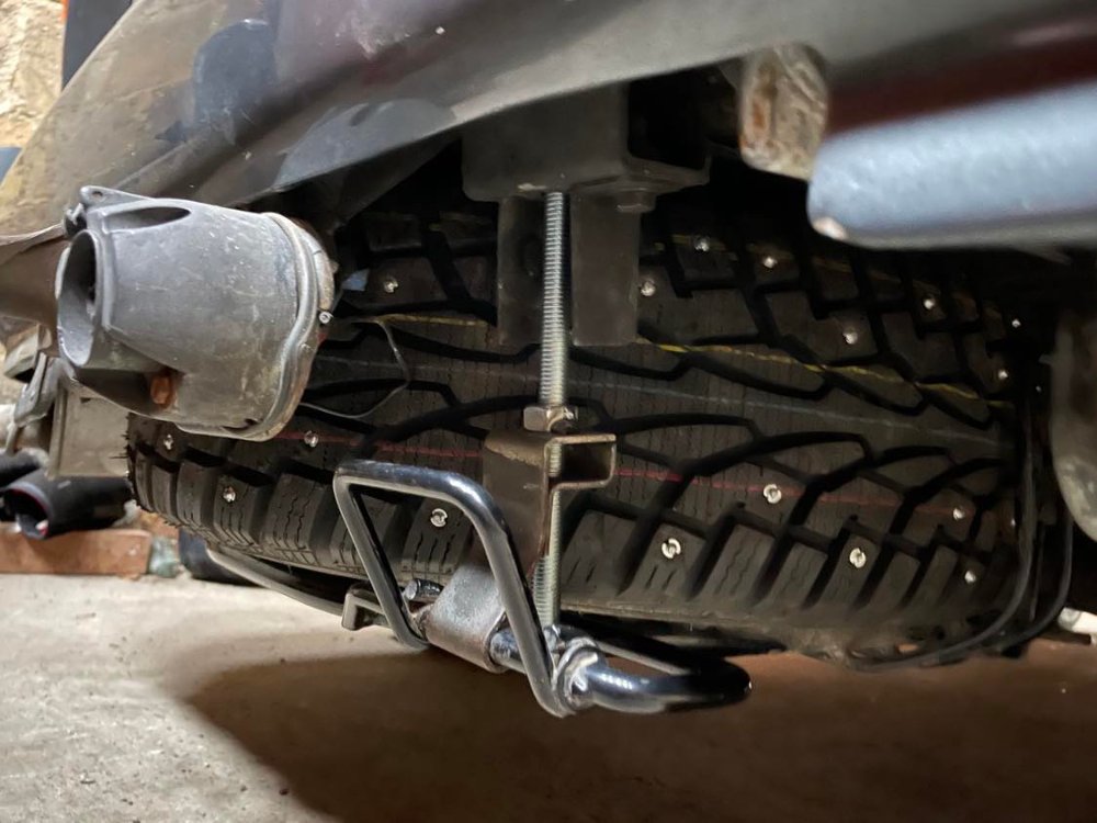 Je pense au début que c'est l'attelage qui gène. Alors, carrément, je passe à la disqueuse les deux crochets qui accueillaient les chaines de sécurité de la remorque ou la caravane avant qu'on les remplace par un câble.