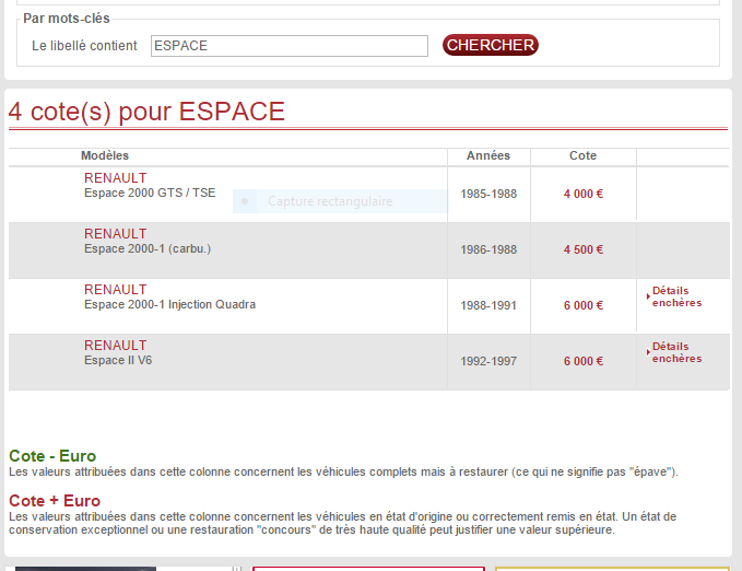 J'ajouterai que le forum est au moins autant au courant des prix pratiqués, pour les Espace, que LVA. Si la présence des Espace dans le "monde de la collection", tel que le voit LVA, augmente dans les années à venir, peut-être que la validité de leur cote progressera