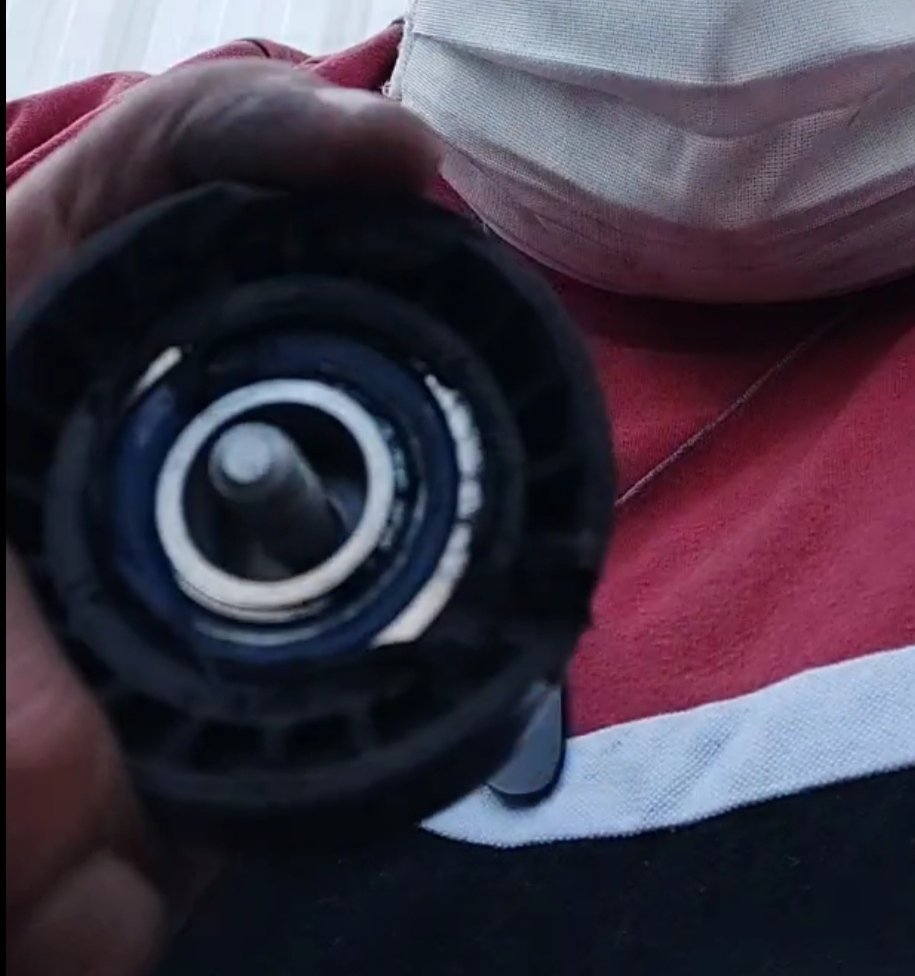 Galet scié par la courroie, ça a tellement chauffé le plastique que le roulement est désaxé et c'est complètement grippé...