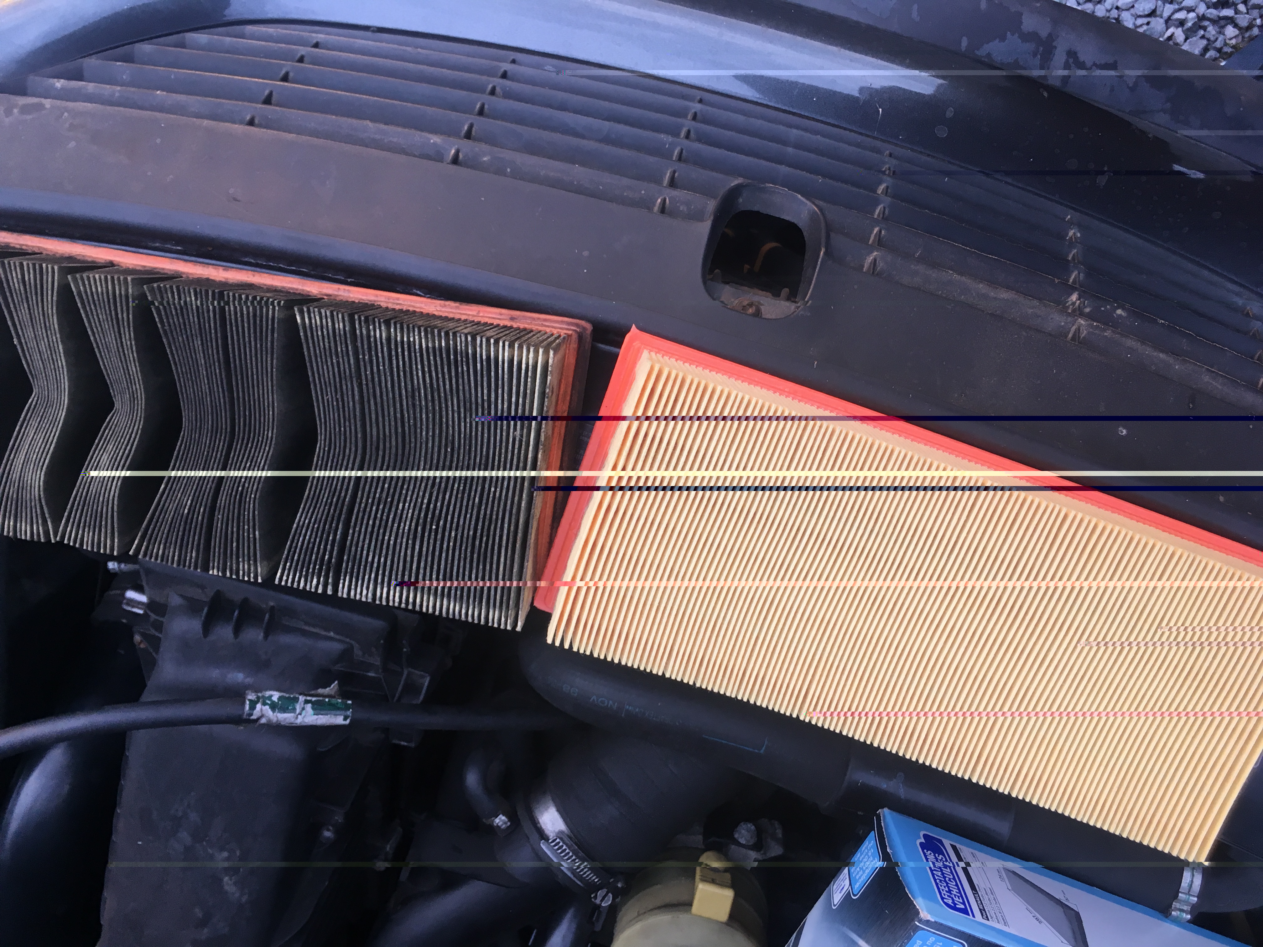 Ce soir j'ai vidé un peu mon (immense) coffre et je suis retombé sur un sac de pieces detachées que j'avais acheté le mois dernier sur LBC ... surprise: un beau filtre a air tout neuf que je me suis empressé de changer !