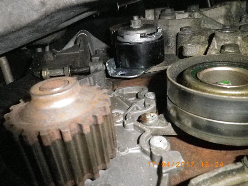 Oui, j'avais déposé ma poulie damper. Mais le galet tendeur était grippé mais c'est réoslu. La courroie est détendue.. Je la retire.