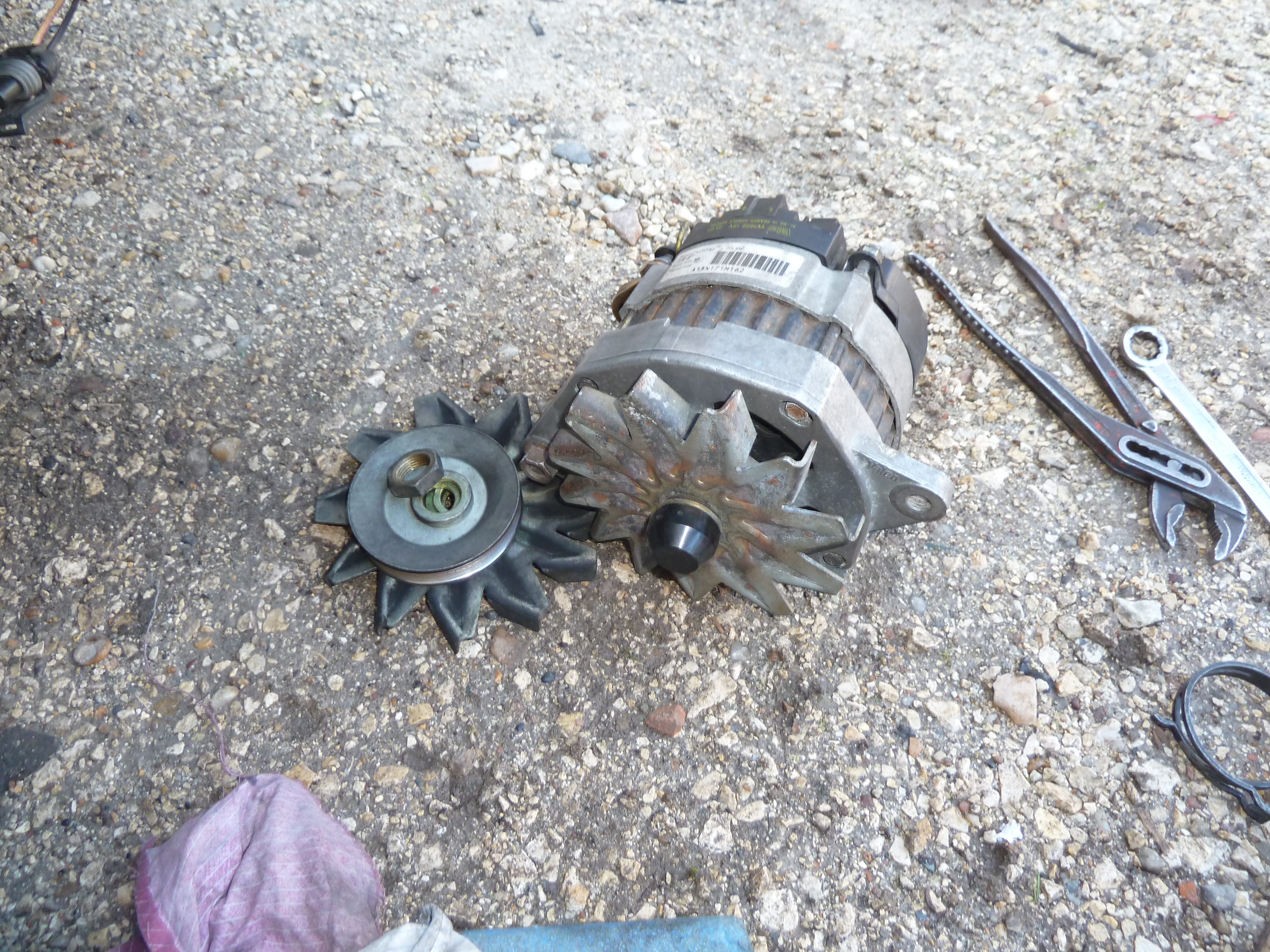 Recuperation de la poulie d'alternateur pour la mettre sur l'autre (il avait une poulie large rainuré, le 70A!)