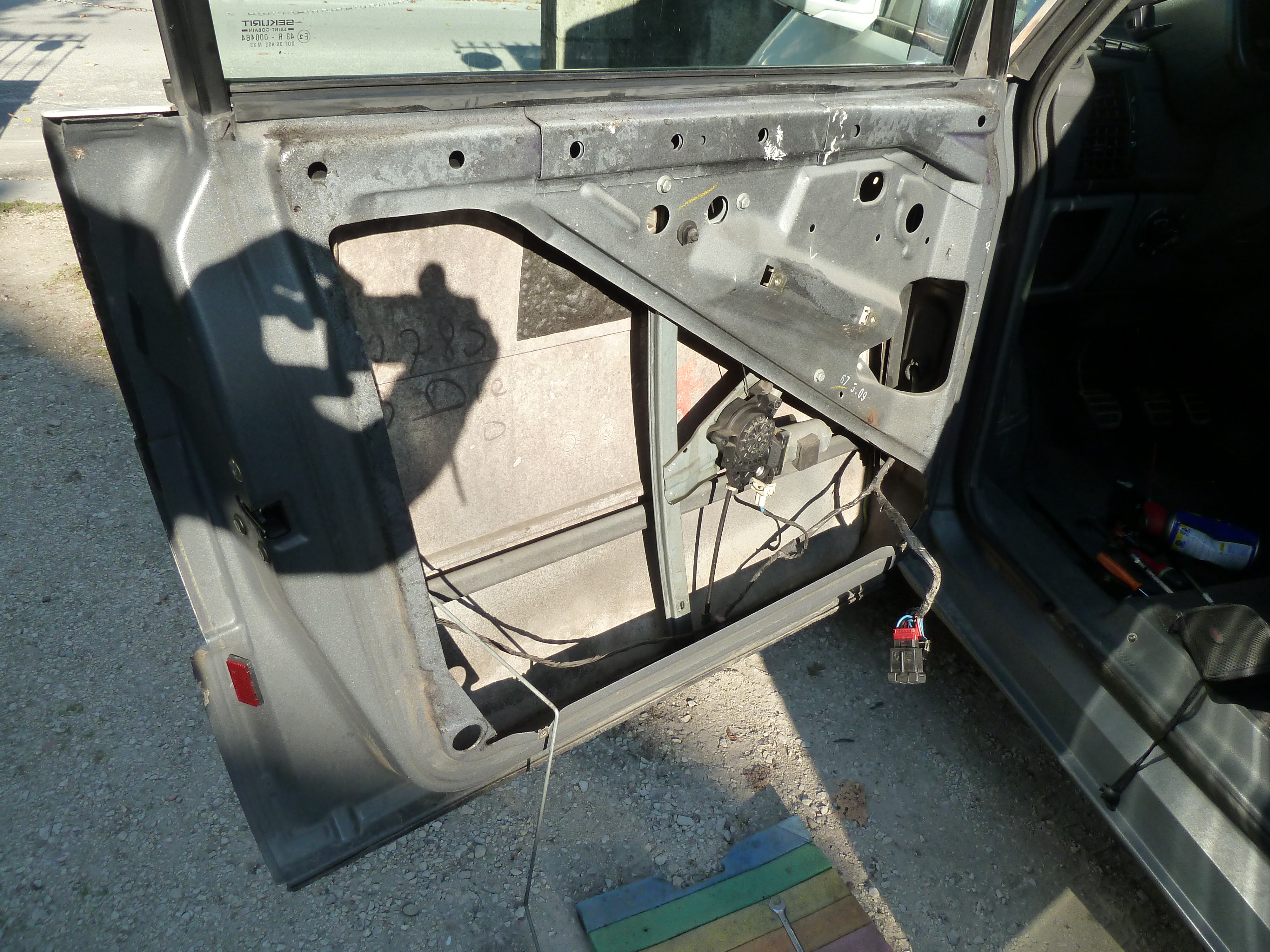 Coté passager, le moteur est fixé sur le haut de la porte, comme dans mon camion blanc!