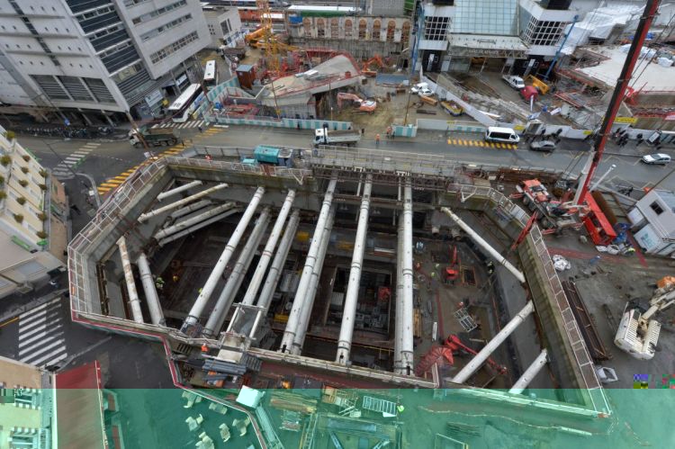 Construction de l'Estacade, au dessus passe les trains en direction du sud (Gap) et de Chamberry