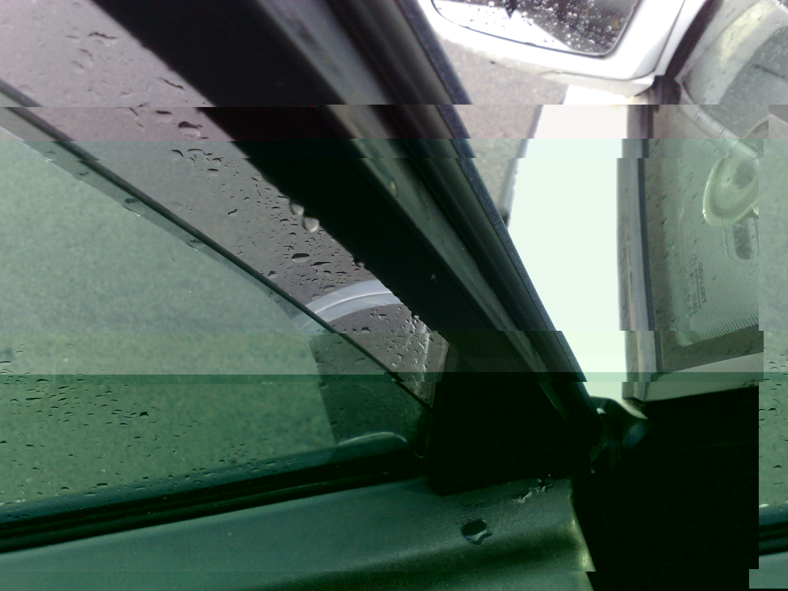 l'eau parcours le long de la vitre et se glisse sur le joint de porte qui ne fait pas son travail d'étanchéité! (j'ai remarqué que le joint de porte est abimée sur la parti qui s'emboite sur la carrosserie!)