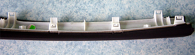 Une fois de plus, lassé de ce genre de défaut, j'ai réussi à retirer le bandeau supérieur afin de mieux comprendre le problème. En fait, le bord du portillon dispose de deux pattes en partie supérieure, destinées à recevoir des plots en caoutchouc (amortissement du portillon lors de l'ouverture).