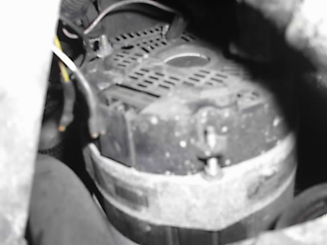 Sur cette photo, on voit bien les deux petits boulons à dévisser en haut qui doivent permettre à l'ensemble régulateur, diode , charbons de sortir.