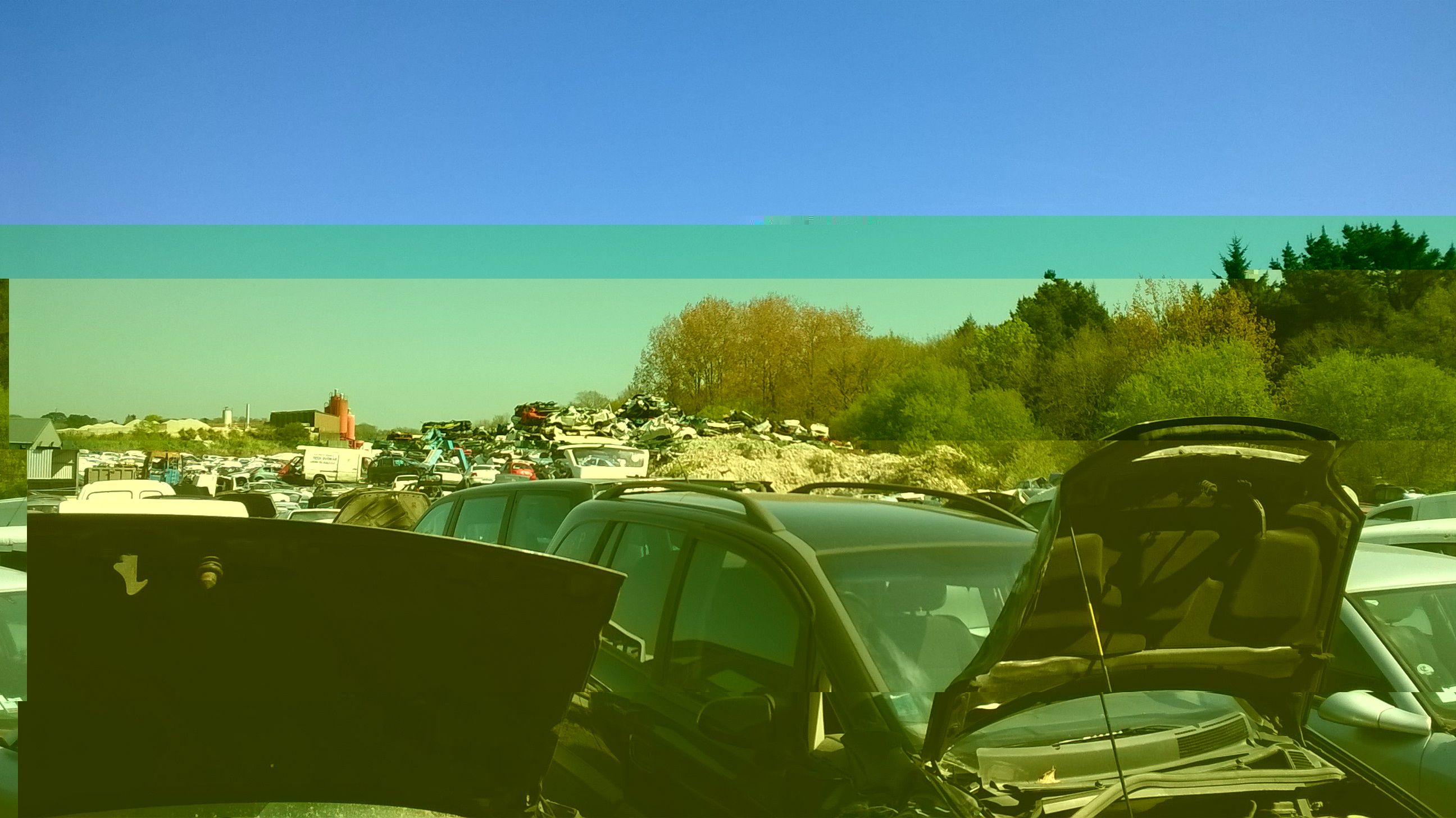 La casse où je vais régulièrement ! Le tas de voitures aplaties haut de plus de 10 mètres !!! une partie du "rayon" Espace