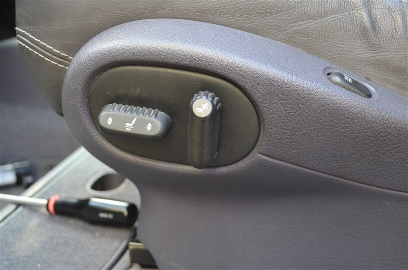 Côté gauche, il y a les commandes de position + la commande de chauffage du siège. Le cache tient par une vis devant, une vis derrière et une vis derrière le cache des commandes. Il y a un support au centre qui se déboite en déplaçant la garniture vers l'avant.