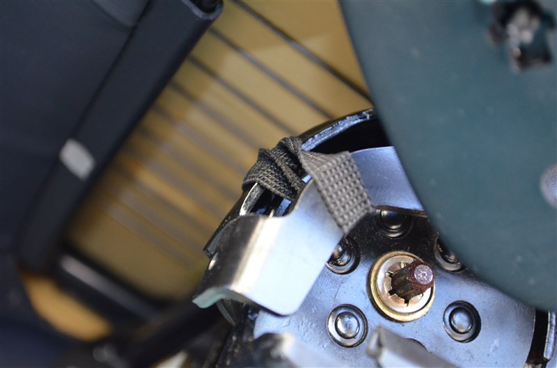 Il y a deux agrafes derrière de part et autre du siège qui servent à tendre le cuir autour des armatures rondes de l'arrière (axe de rotation du dossier).
