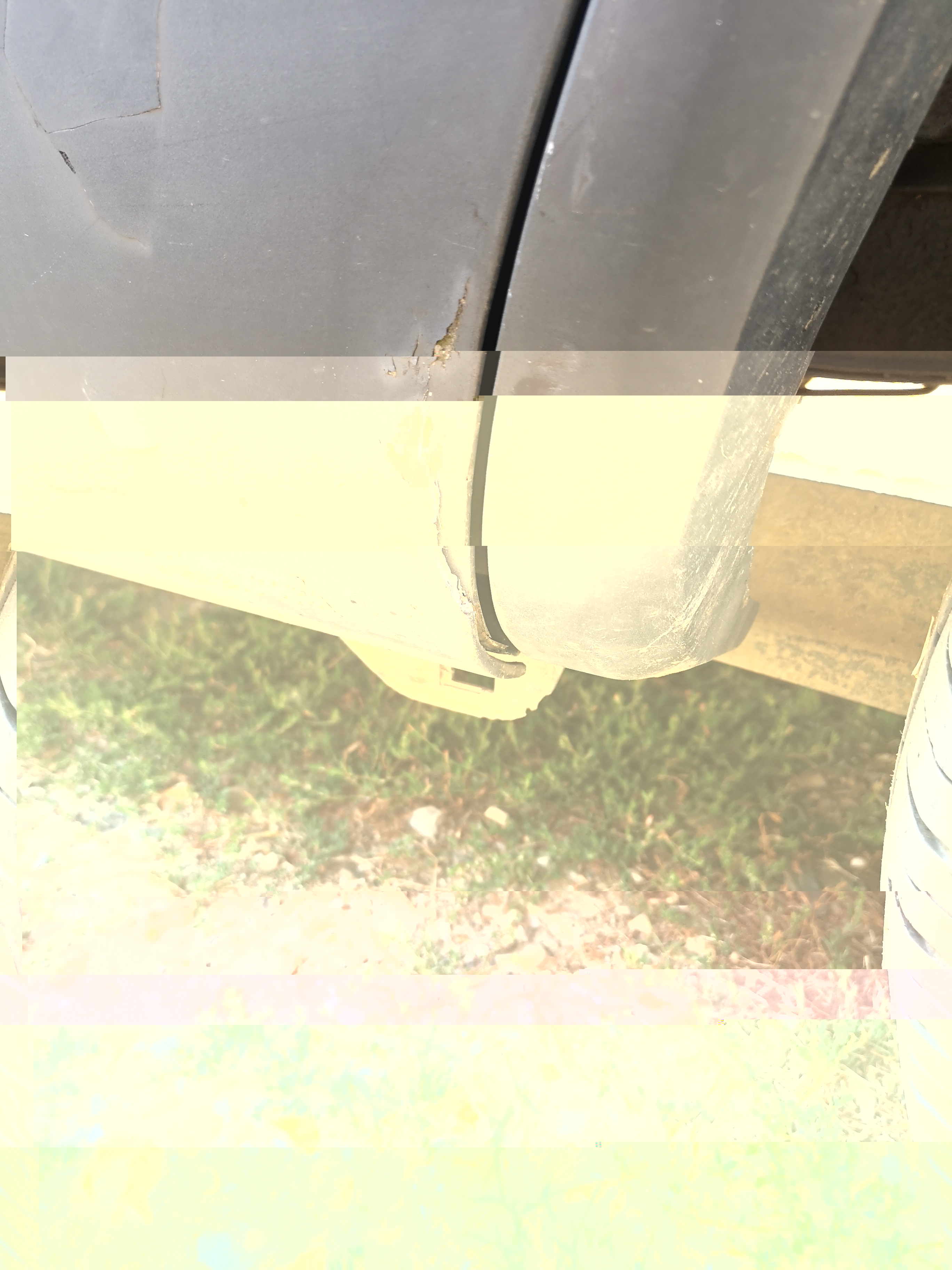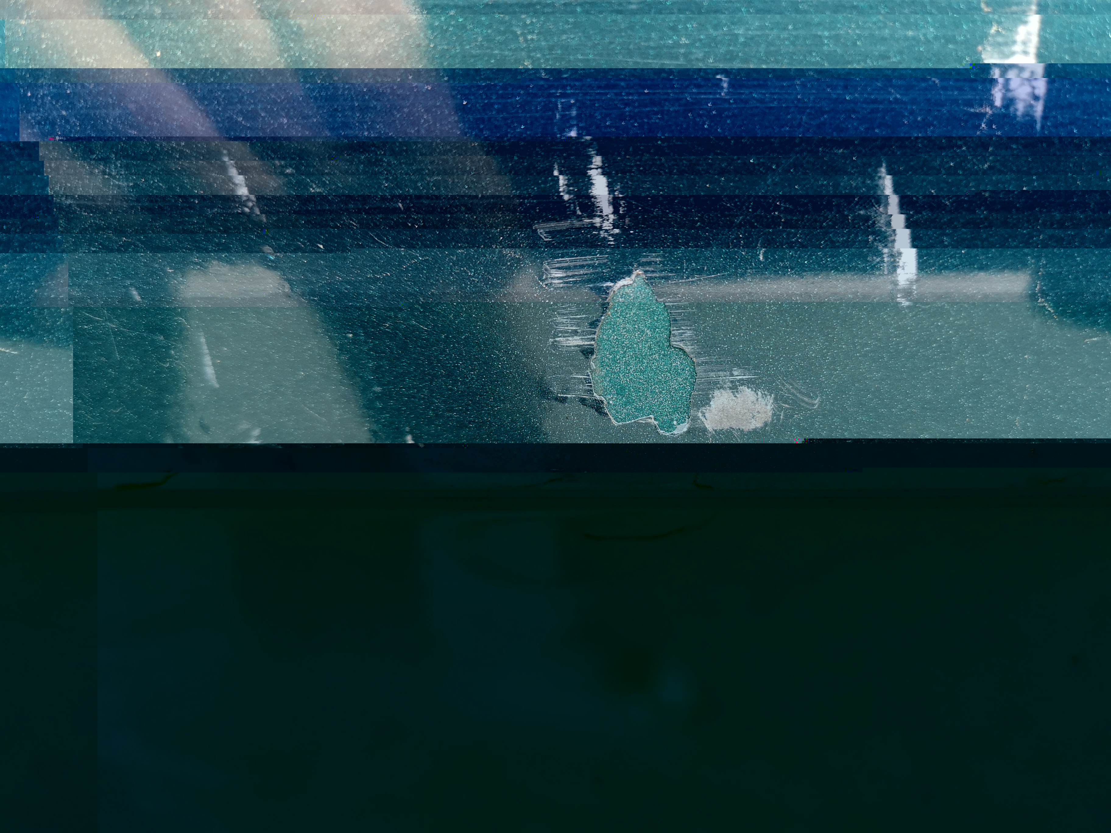 enfoncée n'est peut être pas le terme approprié, elle est cassée : En bonus le reflet de votre serviteur ... Il a dû sacrément forcer : la fibre est bien cassée et le bas du panneau c'est décollé En plus pas de bol, c'est cassé au niveau de la peinture ...