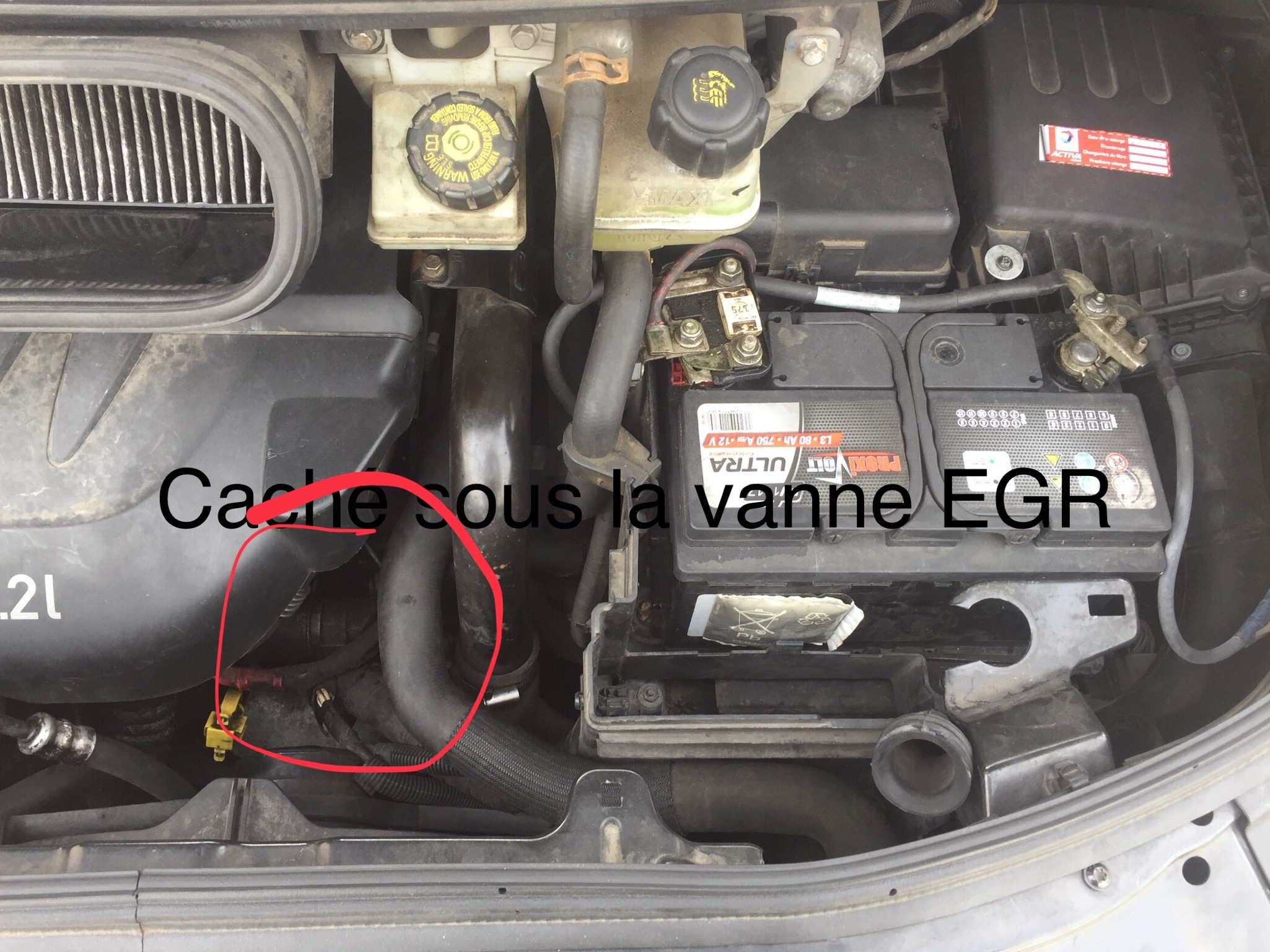 Démarreur caché sous la vanne EGR.