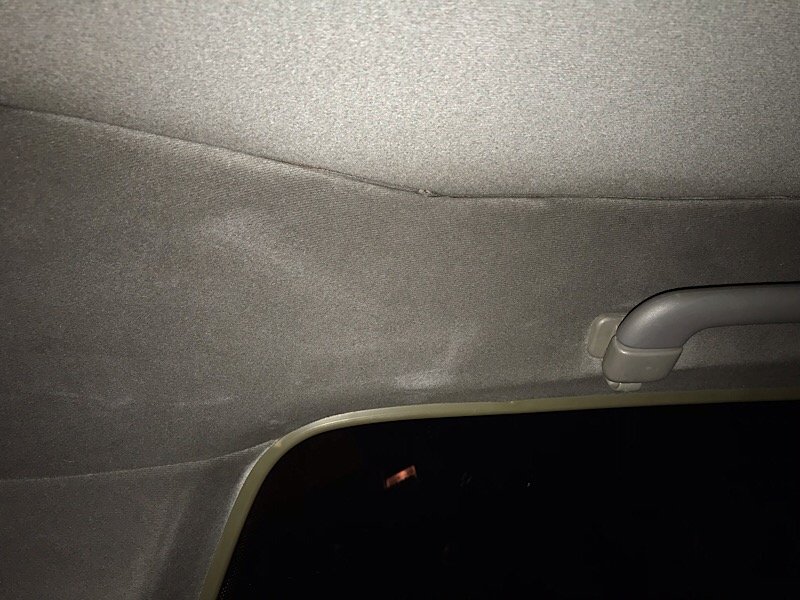 Commencez par retirer le fusible de l'éclairage intérieur. Ensuite, repérez à la main le creux dans la carrosserie au dessus de la custode, derrière la poignée de maintien, et marquez le avec votre feutre (dans mon cas, la moquette était un peu sale et j'ai pu la marquer juste en passant la main