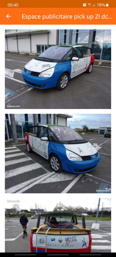 Salut hier en parcourant les annonces d'espace, je suis tombé sur deux perles un Ladyspace et un pick-up espace IV tout les deux