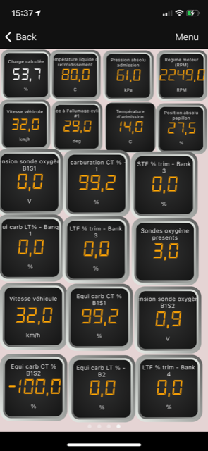 - La cartographie était d’origine mais c’est étonnant c’est comme si les anciens propriétaires avaient roulé à l’E85 parce que le LTFT (Long Term Fuel Trim) est en butée haute et la voiture roulait bien trop riche pour du SP98.