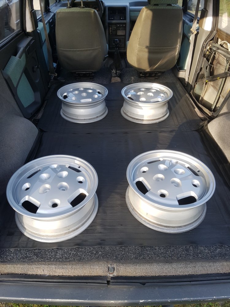 Suite à la remise en état de mon vieil espace 1 ( 2l gts ), j'ai acheté et restauré 4 jantes alu de R25 phase 1 pour remplacer mes vieilles roues tôle toute pourries...