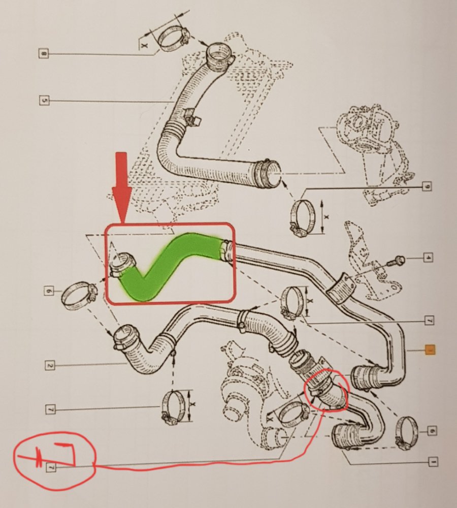 Impossible de trouver la durite ou manchon du circuit de suralimentation du turbo.