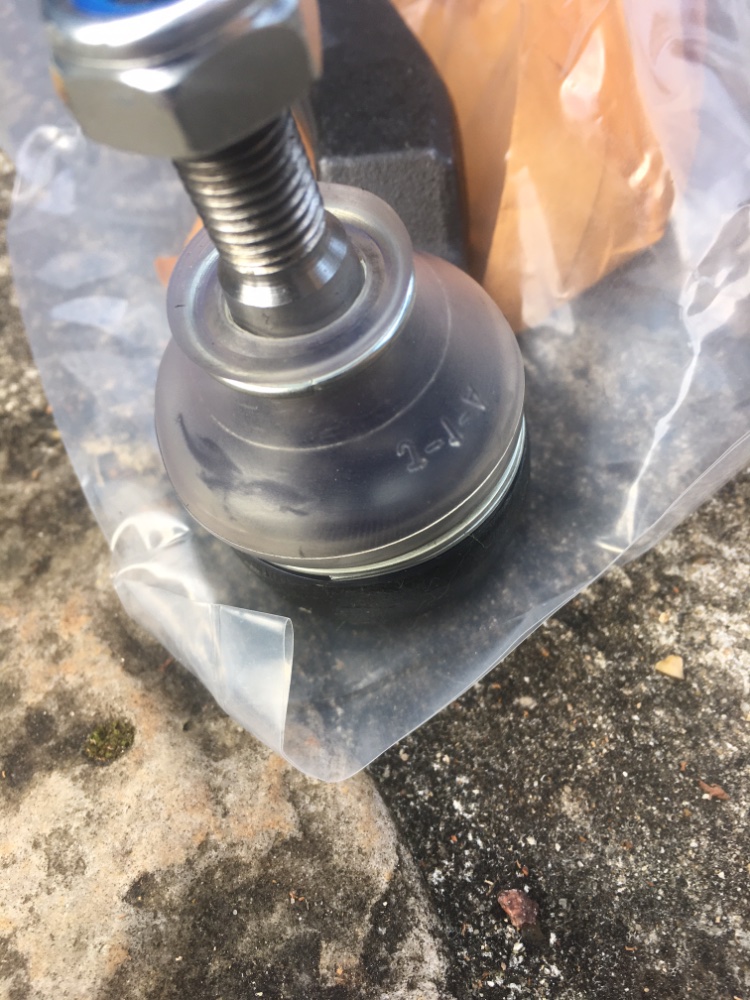 J'ai reçu aujourd'hui toutes les rotules du train avant. Les pièces sont de qualité excellente au toucher, on verra dans le temps pour l'usure. La marque est Mapco, il y en a pour 150€ pour les triangles, biellettes de barre stab et rotules de direction intérieures et extérieures. Les biellettes de barre stab sont deux fois plus épaisses que celles d'origines mais se montent parfaitement, marquage Nissan.
