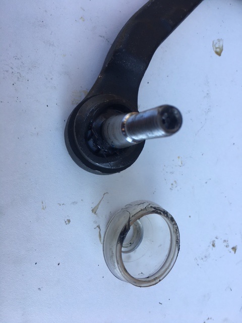 Une rotule de direction démontée, on voit bien que le transparent est le soufflet et non une protection