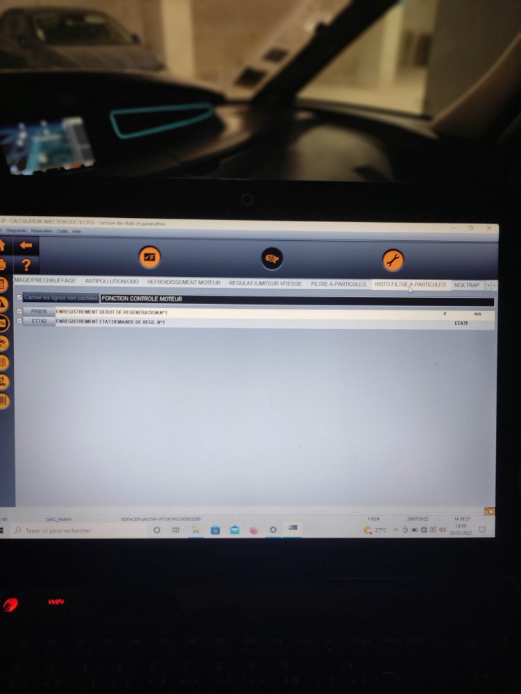J'ai donc fait cette tentative de régénération/nettoyage du FAP sur l'autoroute aujourd'hui et effectivement j'ai deux messages qui ont apparu sur le Clip: et ensuite.... Et sur les infos générales de mon FAP j'ai ça: La lecture en PR 383 n'indique que 7 grammes de masse de suie de particules dans le FAP.