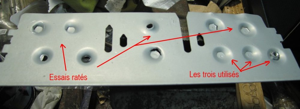 Et pour les rivets filetés aluminium, car c'était la première fois que je les utilisais, il ne faut pas trop forcer comme pour la pose des rivets POP, parce que si on force, on arrache le filetage ce qui n'est pas précisément le but recherché. Bon, un coup de perceuse et on recommence.