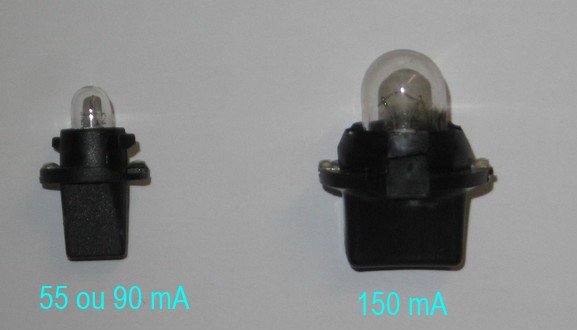 Je me suis quand même demandé pourquoi j'étais sûr que les ampoules faisaient moins de 100mA ... c'est parce que je les ai mesurées il y a 15 ans quand j'ai installé mon régulateur de vitesse, je voulais renvoyer l'état du régulateur sur deux lampes du combiné instrument donc il me fallait le courant de l'ampoule pour choisir le transistor de commande. J'ai fait les transparents pour les voyants mais je n'ai pas réussi à extraire les commandes du régulateur...