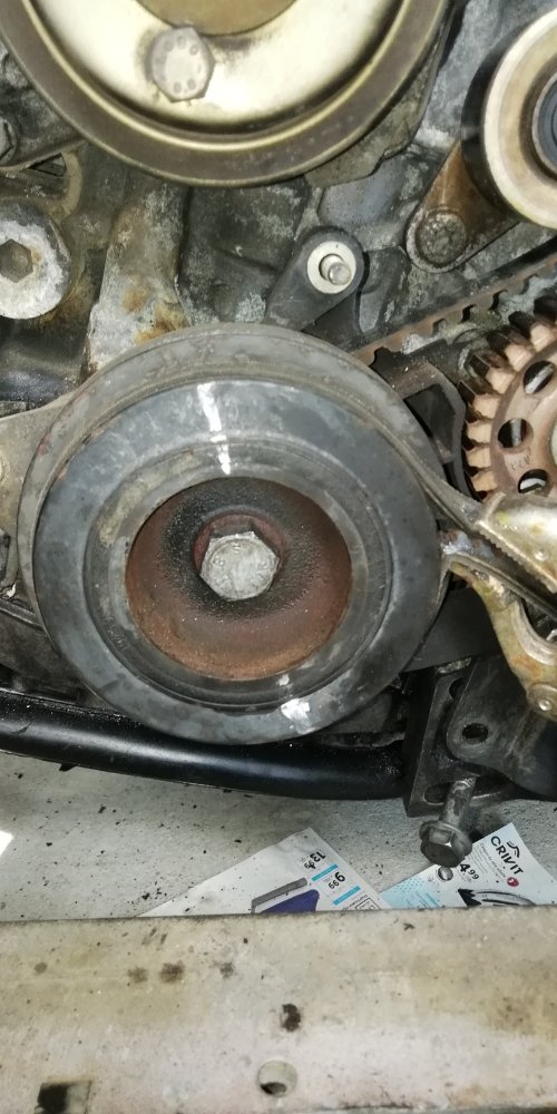 bien sûr la nouvelle distri est en place et le pignon de vilo en place , mais tout n'est pas fermé encore puisque j'ai eu la bonne idée de vouloir changer le joint de cache culbu , et je me demande s'il faut le coller , car ,ce nest pas du tout le profil de l'ancien , c'est un joint PAYEN , et c'est du "carré simple" je dirais , alors que l'ancien a un profil bien étudié pour rentrer dans le cache culbu.