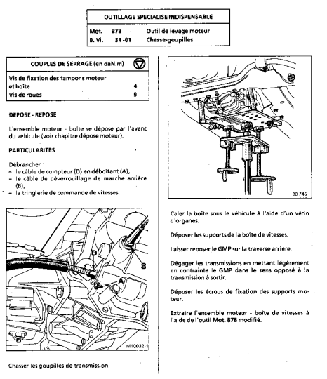 2 - Les supports de boîte, il vaut mieux les défaire côté carrosserie ou côté boîte pour faciliter la sortie...