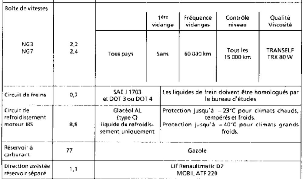 la capacité préconisée p 41 de la R.T.A. ( 2eme partie ) est de 2,2 l. pour la boite ng3 pour le 2,1 td