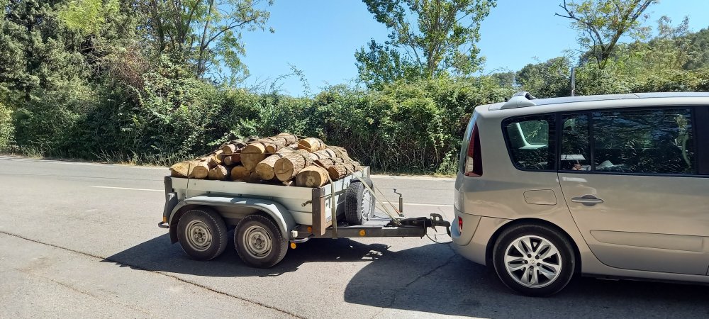 chargé " , entre transport de bois ( 3 remorques )