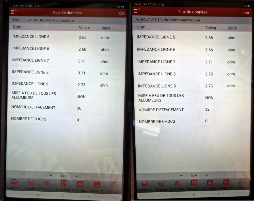 J'ai contrôlé la continuité des fils du bout de la fiche du prétentionneur jusqu'à la grosse connectique qui se trouve sous la moquette du plancher sous le siège mais rien à faire impossible d'effacer le défaut, il revient systématiquement dès lors que je l'efface à la valise.