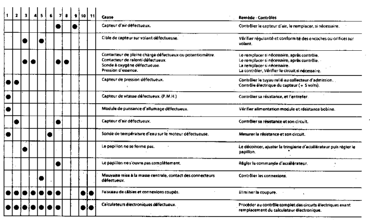 La doc donne des infos des tests à réaliser avec la valise X25... beaucoup de trucs sont testés avec cette valise mais le capteur anticliquetis + le capteur papillon semblent importants + la vanne de régulation bien sûr.
