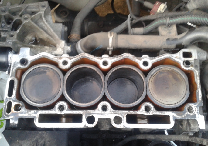 Aussi quand j'ai déposé la culasse, le bas moteur était encore plein de LDR, j'ai aspiré ce que j'ai pu mais il en reste encore au fond...