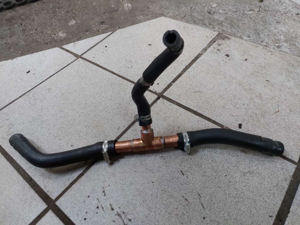 A mon avis vu la tête de cette durit, en choisissant un modèle assez long du bon diam + un T en laiton avec une paire de colliers + une autre durit plus petite avec une courbe approchant celle d'origine ça doit être faisable pour pas trop cher.