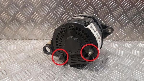 Après plusieurs gros arcs électriques lors du branchement de la masse sur la batterie et après une longue réflexion, on a décidé de brancher le gros fil rouge sur le tige filetée indiquée "-". Maintenant, plus de soucis. Cet alternateur est câblé à l'opposé de celui installé précédemment.