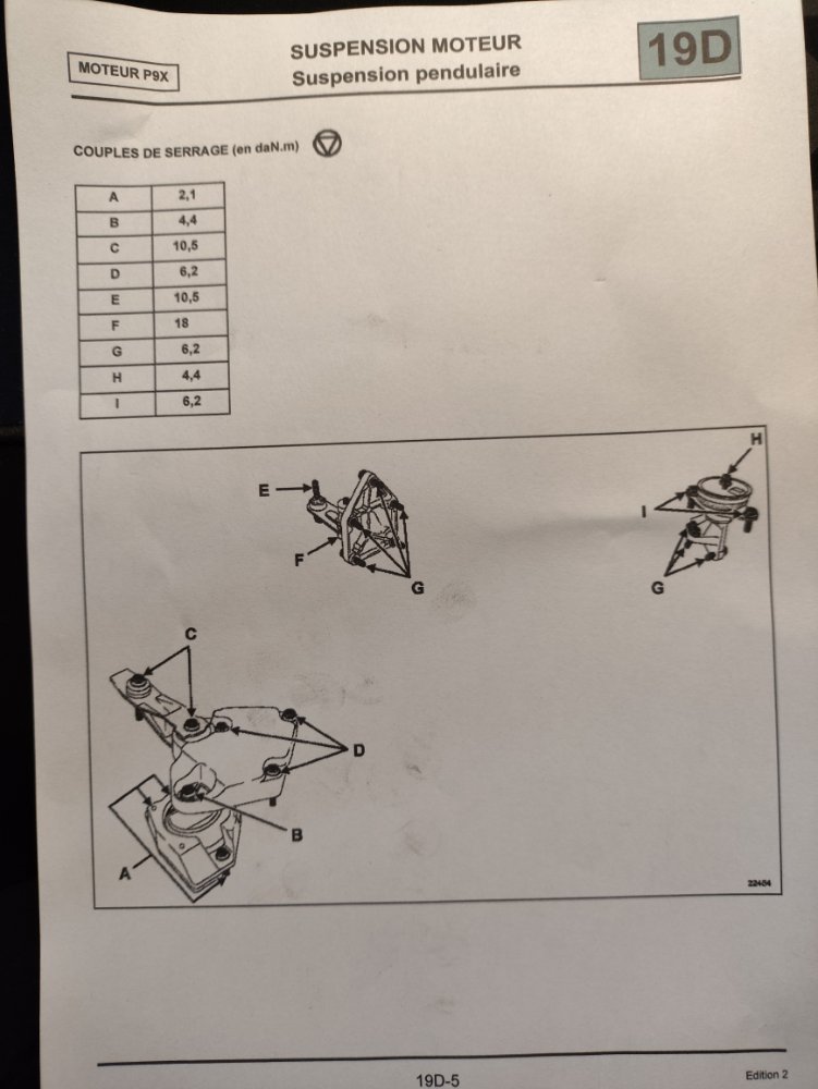 Si ça explique mieux, le boîte est tenue par un filetage en (H). Les deux vis (I) ne font que tenir le support sur le longeron : dévissage et dépose. Pas besoin de toucher à (G) si pas de dépose de la boîte.