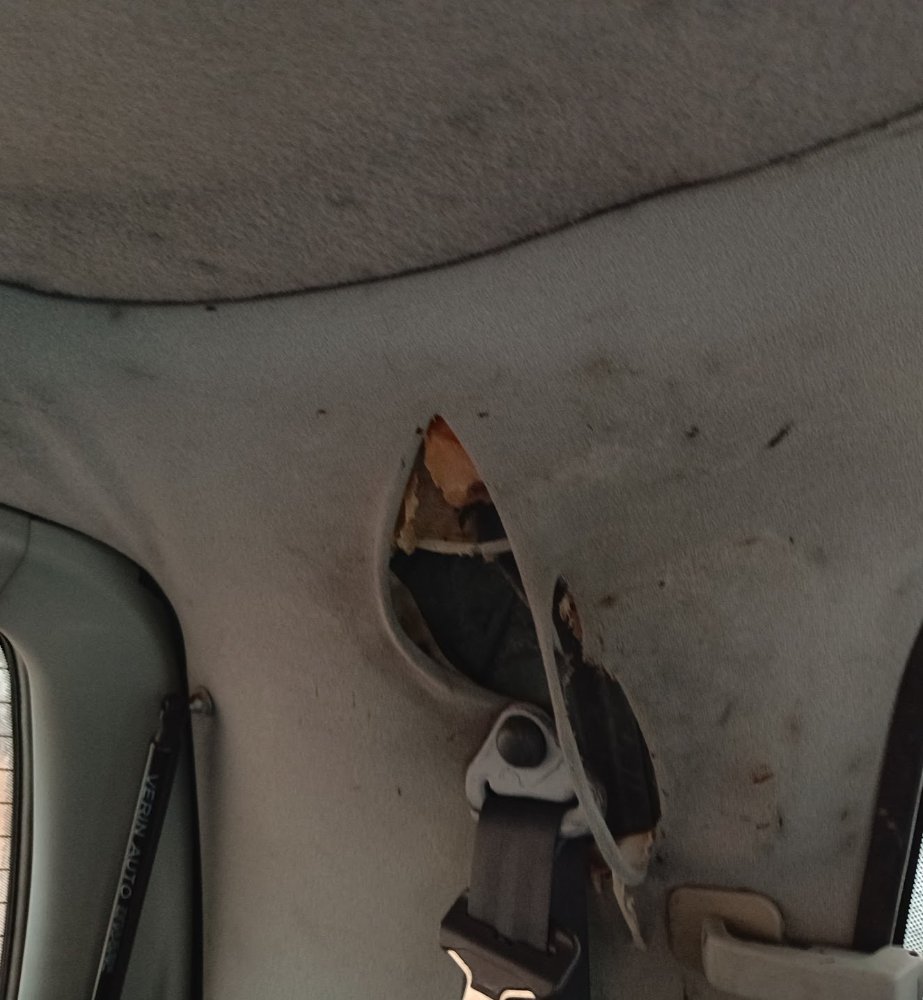 Partie arrière : Le ciel de toit est complètement décollé, laissant apparaître la mousse et la surface en dessous de cette dernière.