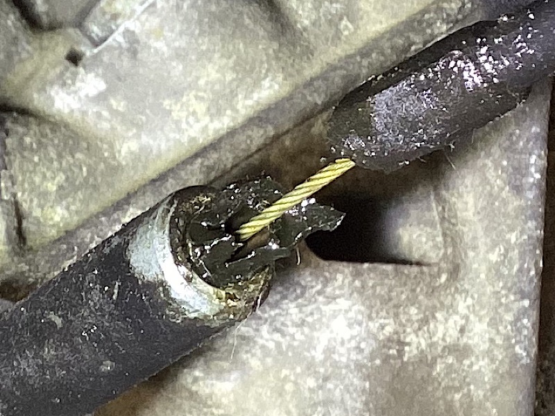 Câble refixé côté levier de vitesse, je retrouve l’usage de la marche arrière sans problèmes. Niveau étanchéité c’est pas top mais ça dépanne.l’idéal serait de la gaine thermo par là dessus mais j’en ai pas de ce diamètre !
