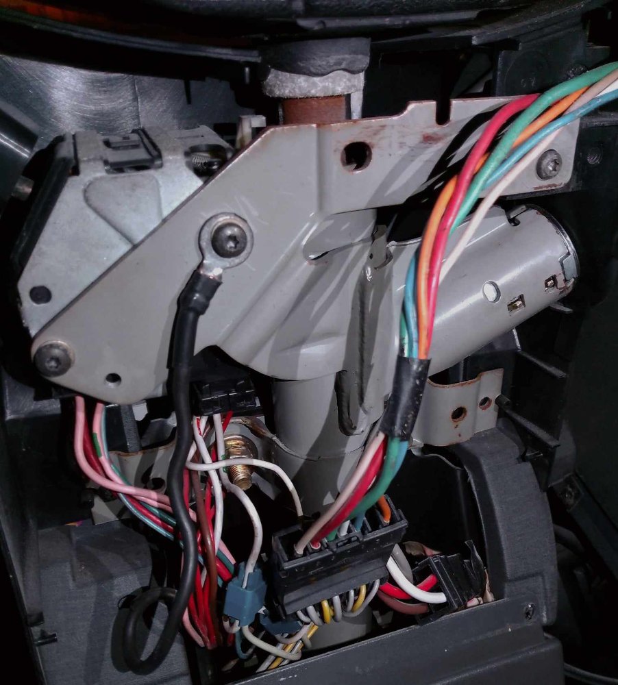 La masse de la colonne de direction n'est pas terrible, je l'ai améliorée en employant une rondelle de terre de porte d'armoire électrique; Voir photos. ça peut améliorer aussi pour la fixation de la tresse sur le châssis, car dans ces deux cas, c'est pris sur la peinture qui n'est pas conductrice.Les petites pointes de la rondelle pénètre à travers, assurant un bon contact.