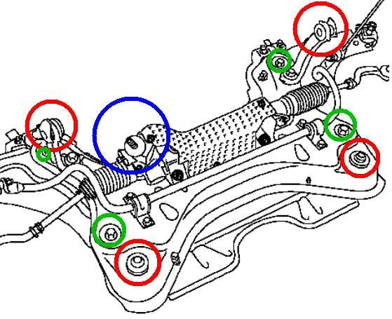 - déposé les fixations arrière de berceau (en rouge, les "tirants acoustiques" si j'ai bien compris),